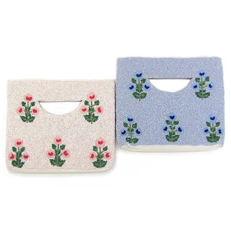 MS Handicraft Multicolor Glass Beaded Bag Handle Handheld Casual Hand Bag Indian Handmade Customized Beads Shape Baguette Bag