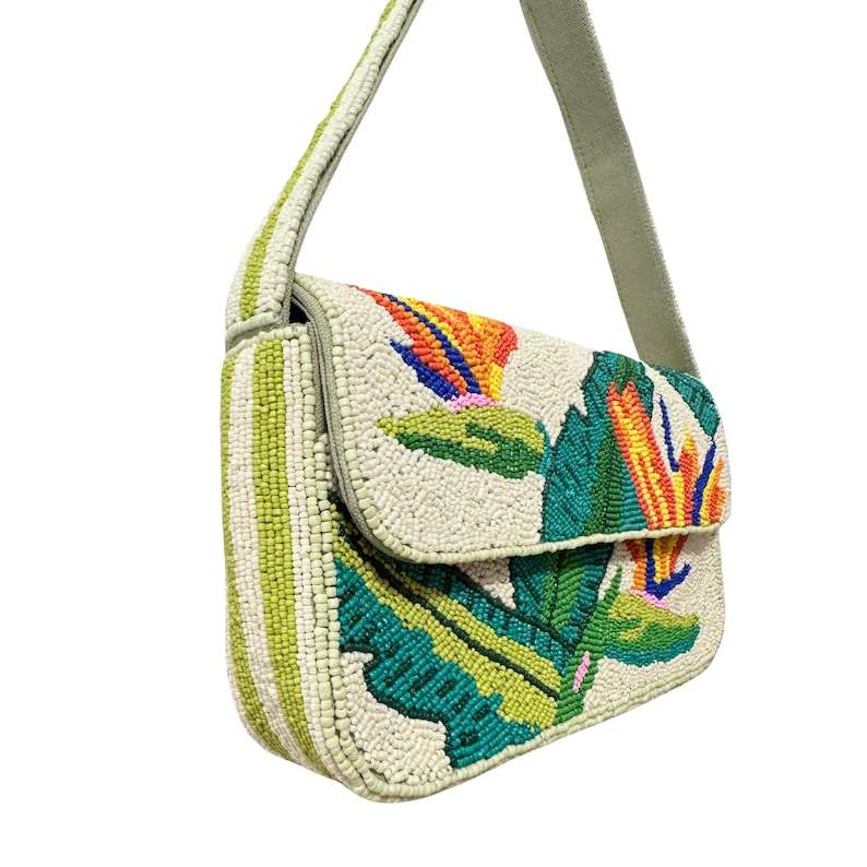 MS Handicraft Tropical Floral Glass Beaded Clutch Customized Shape & Color Mexican Fiesta Purse with Crossbody Chain