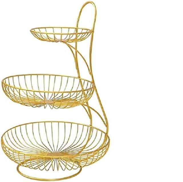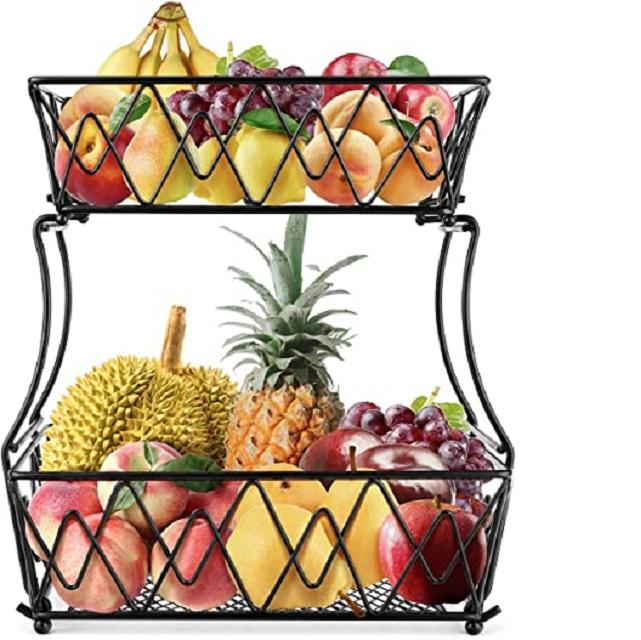 MS INC Multi Functional Metal Fruit Dish Kitchen Storage Fruit Vegetable Hanging Beg Basket With Wooden Handle