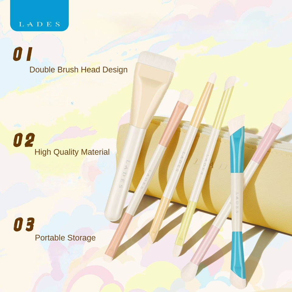 MSQ Professional 6-Piece High Quality Synthetic Hair Makeup Brush Set for Face Lips Concealer Application PU Leather Bag for