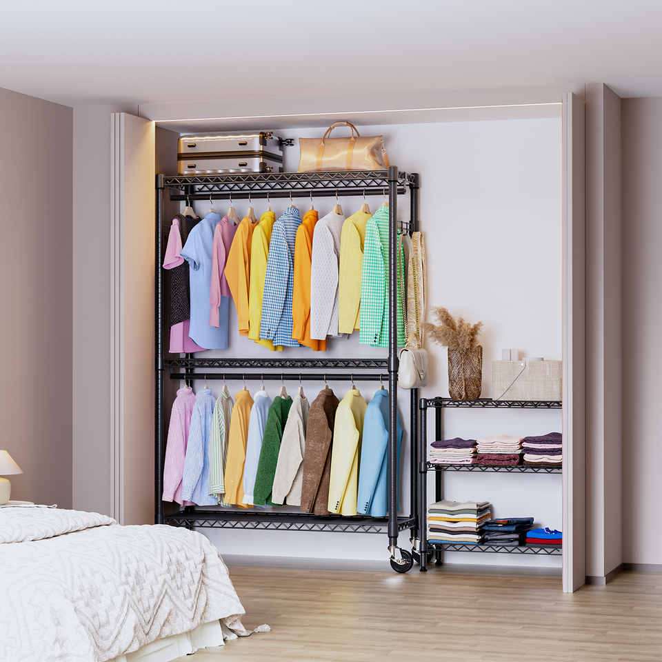 MZG Heavy Duty Steel Metal Wire Three-Layer Modern Garment Rack with 1050lb Capacity for Living Room