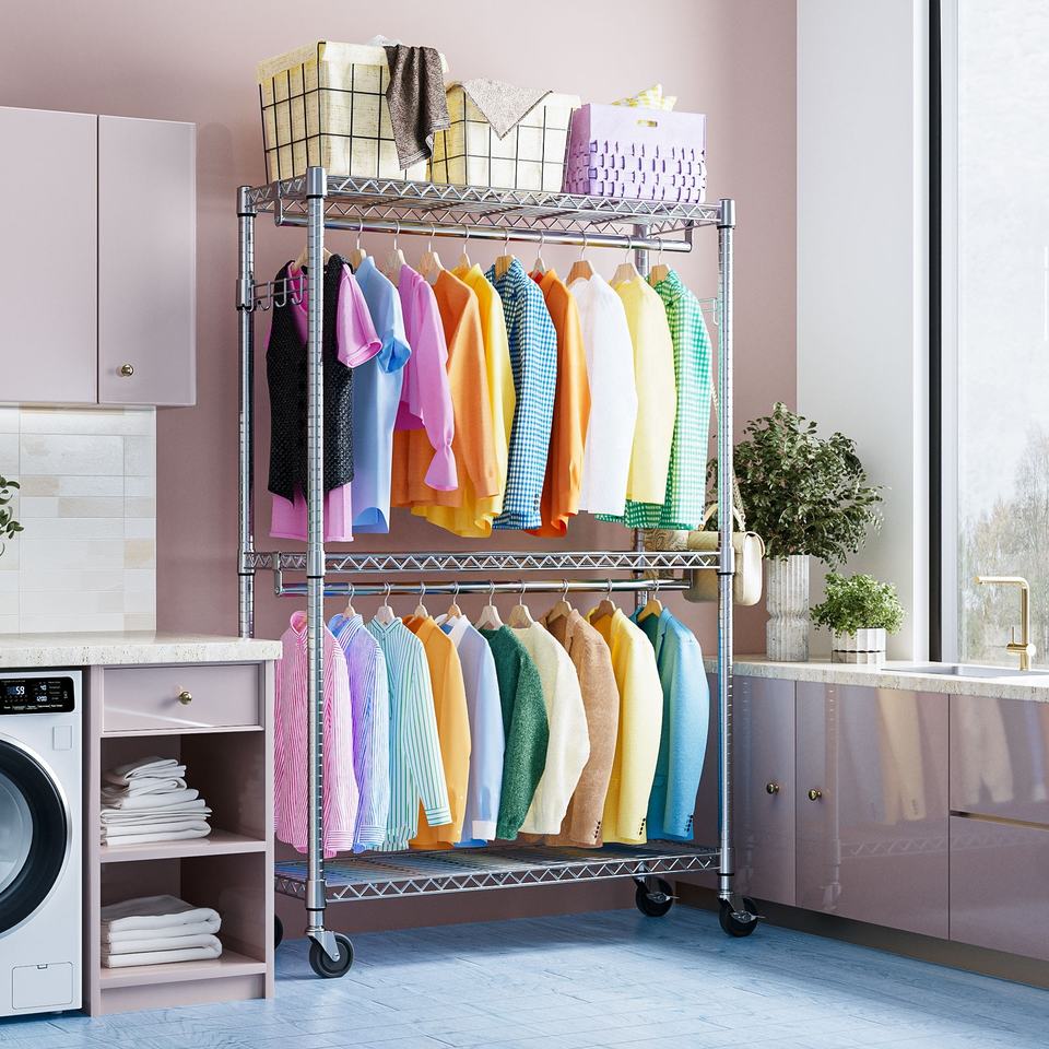 MZG Three-Layer Modern Metal Clothes Coat Rack Shoe Racks Cloth Drying Stand Saving Multifunction Living Room 40x115x193/203cm