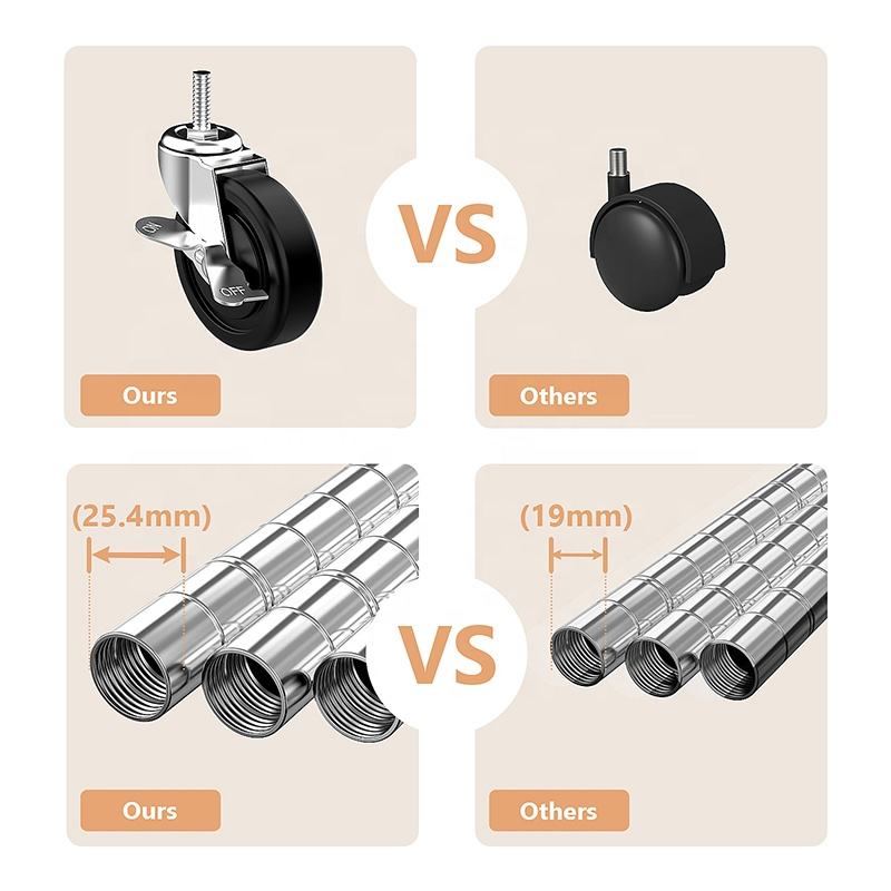 MZG USA Heavy Duty Freestanding Rolling Garment Rack 4-Tier Adjustable Wire Shelving with Rods for Living Room Stock Coat Stand