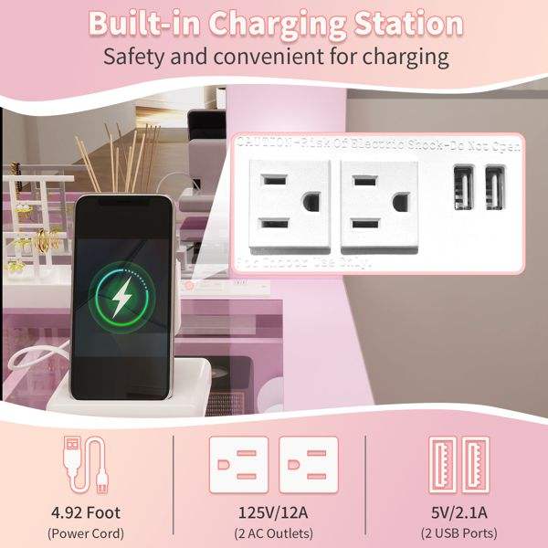 Macaron 9 Drawer Dressing Table Set with 12 Tri-Color LED Light Bulbs Particleboard & Melamine Finish Makeup Vanities