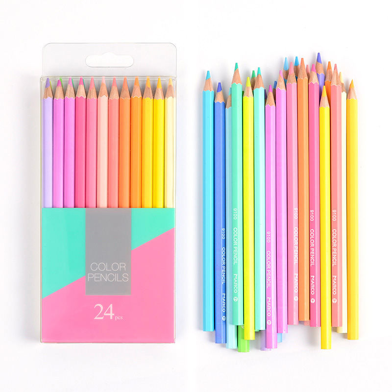 Macaron Light 24 Colors Wood Pencil Set Custom Wholesale Colored Pencils with logo