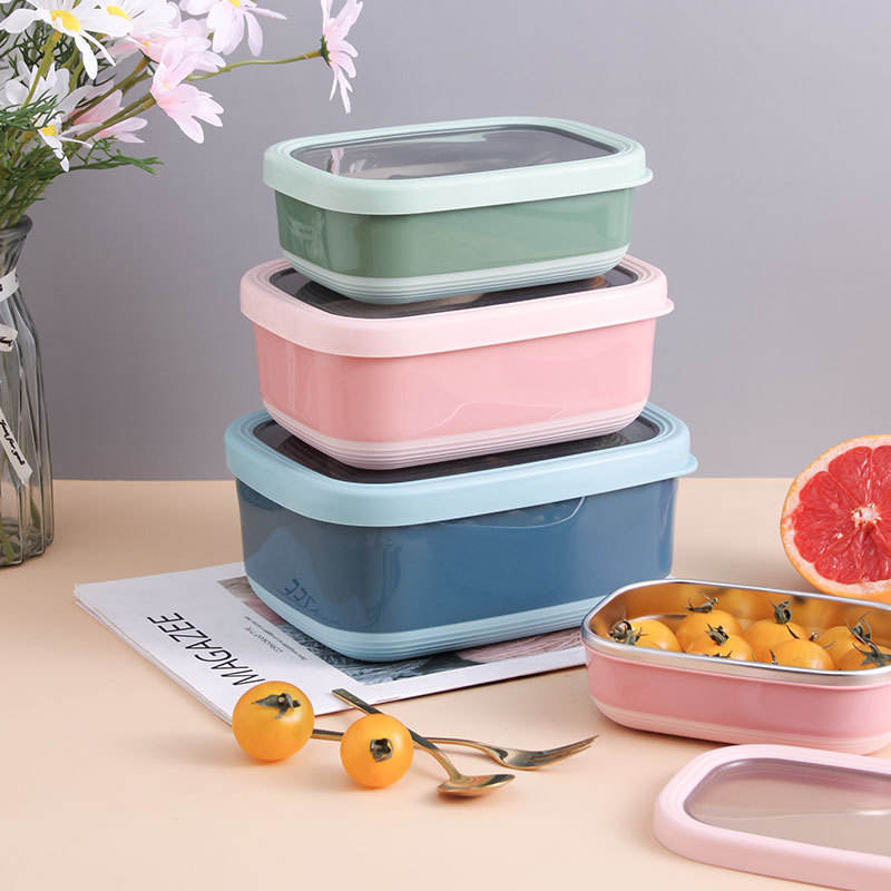 Macaron Stainless Steel Food Storage Container Rectangle Pink Magnetic Lid Leak Proof Airtight For Refrigerator Travel Use