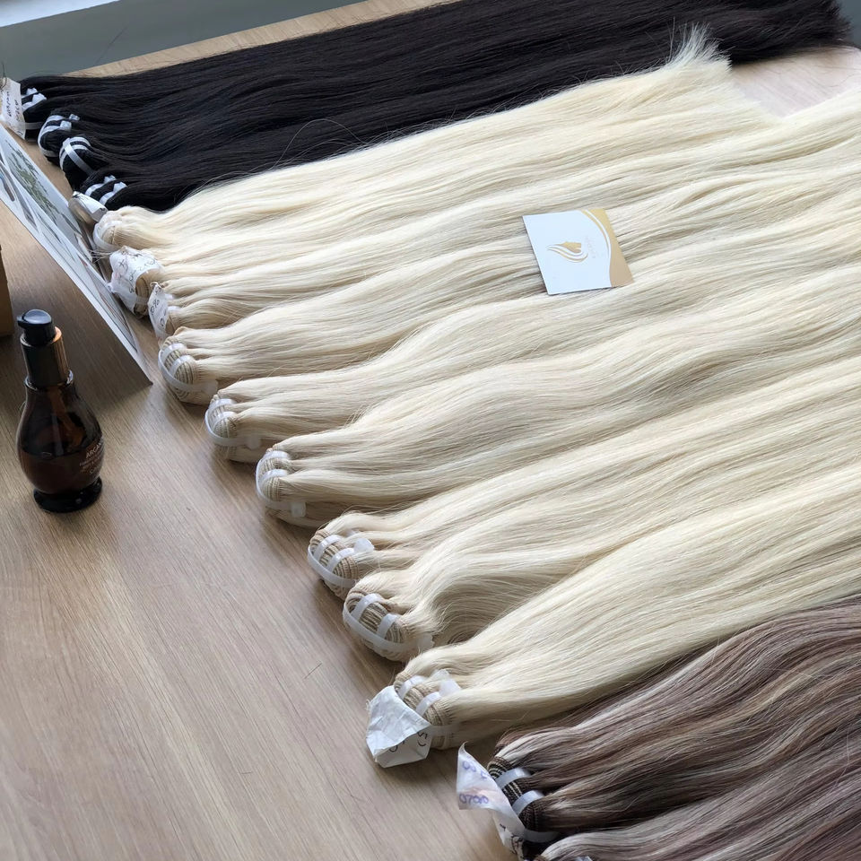 Machine Weft Straight Bleached Hair Extensions Wholesale 100% Vietnamese Virgin Human Hair Double Drawn