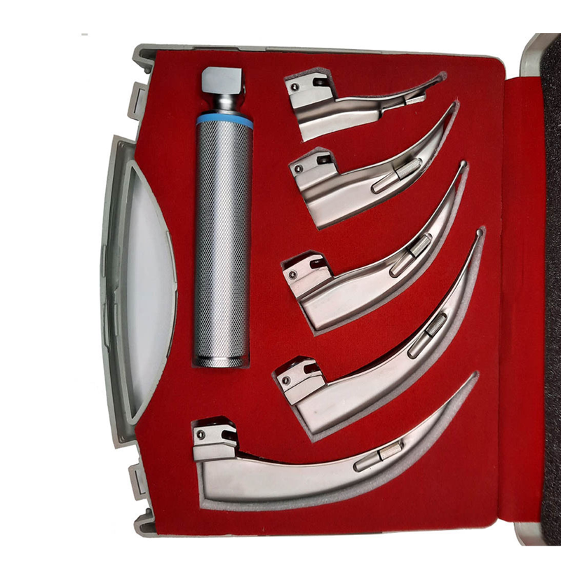 Macintosh Laryngoscope Instrument Set with 5 Fiber Optic Blades Manual Stainless Steel for Reliable Airway Management