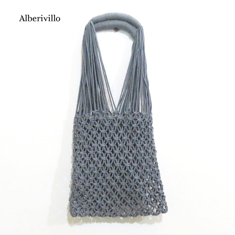 Macrame Beaded Handbag With Wood Handle Customized Designed Crochet Bag