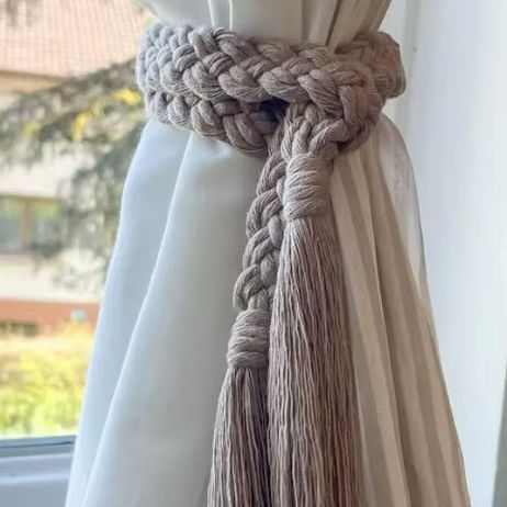 Macrame Curtain Tieback, Boho Curtain Holder No Drill Cozy Home Decor