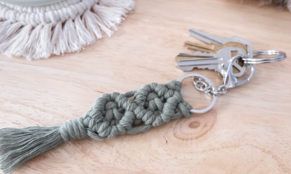 Macrame Keychain, Cute Rope Keychain Tassel, Short Small Custom Macrame Key Chain, Purse Bag Charm Boho Accessories,