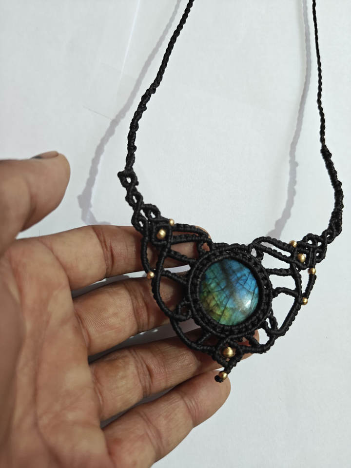 Macrame Multiple Necklace Rose Quartz Gems 20X30mm Approx Multi Shape Black Color Thread Bezel Setting for Party Wear Valentine