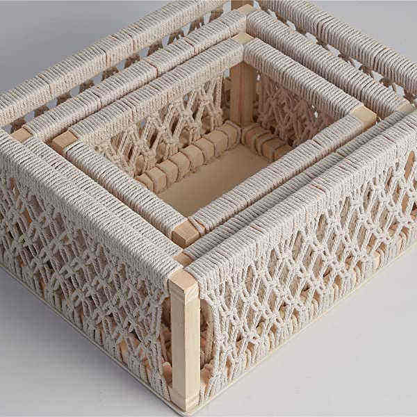 Macrame Storage Basket in Natural Cotton with Wooden Handles Perfect for Bathroom Nursery and Bedroom Decor No reviews yet