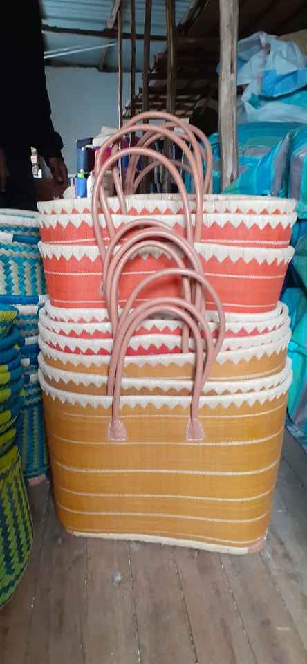 Madagascar Colorful Raffia Straw Oversized Shopping Basket Natural Straw Beach Bag Leather Handles Drawstring Closure Oversized