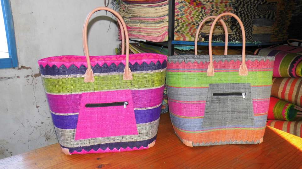 Madagascar Colorful Raffia Straw Oversized Shopping Basket Natural Straw Beach Bag Leather Handles Drawstring Closure Oversized