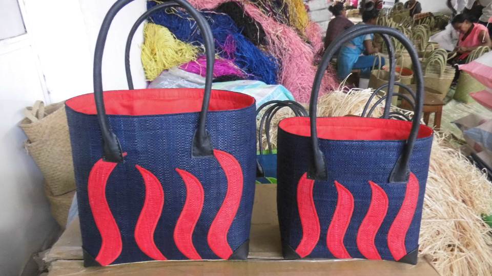 Madagascar Natural Straw Raffia Zebra Beach Women's Fashion Handbag Dual Pearl Bow Embroidered Leather Cotton Lining Zipper