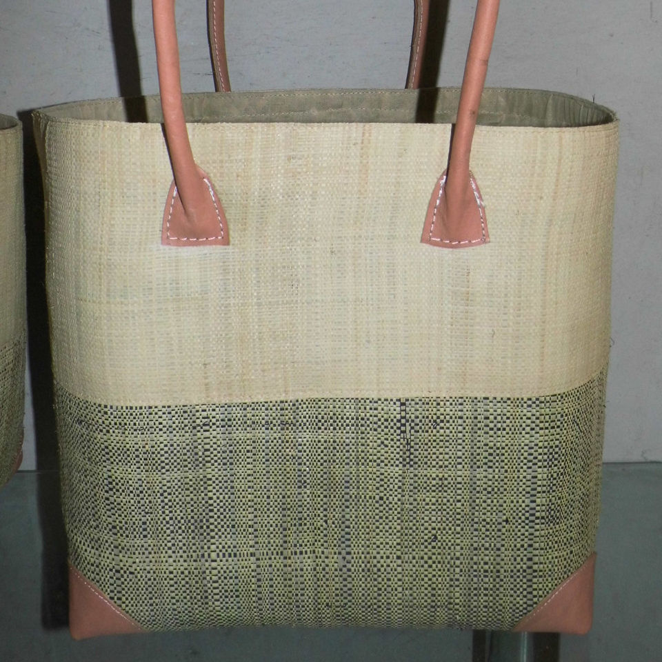 Madagascar Small Bag Zebu Horn Button Closure Thin Leather Handles Inside Raffia Pocket Small Size Raffia Tote Rabane Handbag