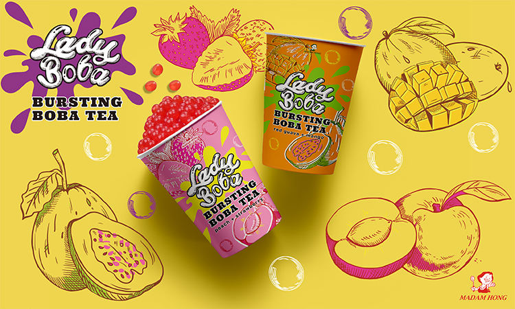 Product name:Madam Hong Peach + Strawberry bursting boba tea