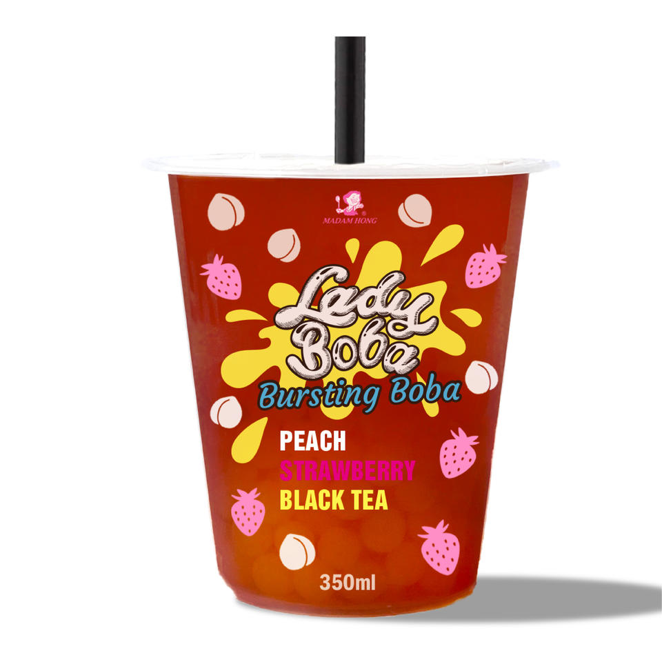 Madam Hong Cantaloupe and Pear Bursting Boba Bubble Tea with Popping Round Tapioca Ball Ingredients 500ml
