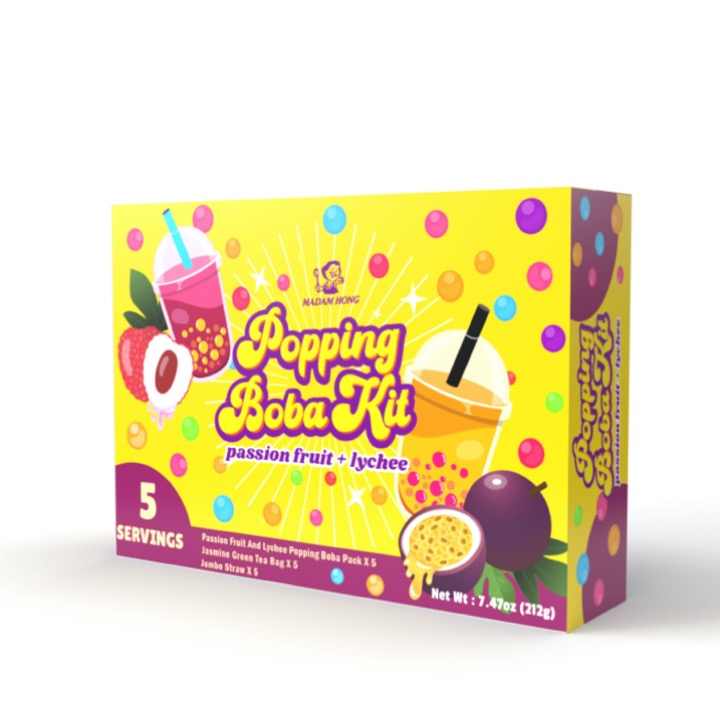 Madam Hong Premium Professional Bubble Tea Kit Passion Fruit Mango Popping Boba Flavors Tapioca Balls Instant Tea Box Packaging