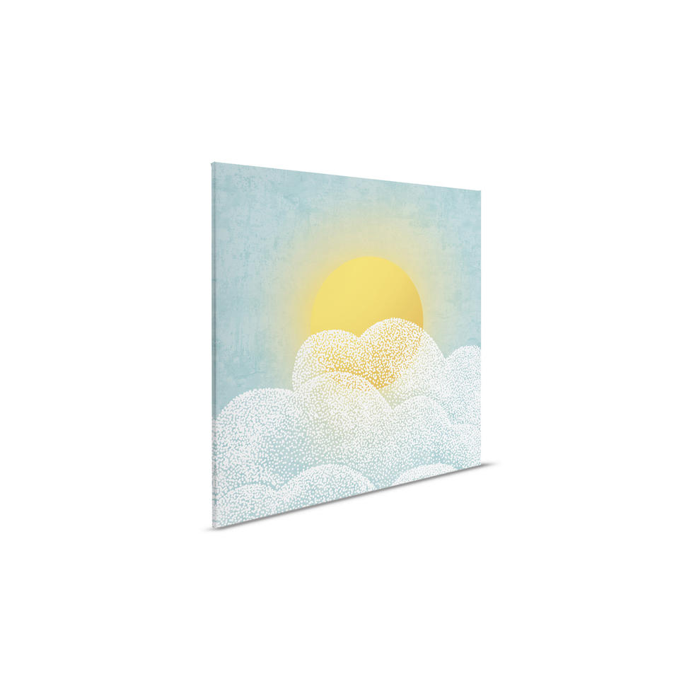 Made In Germany - Home Decor Canvas Picture Sun & Clouds - Wall Art In Blue And Yellow - Canvas Picture On Stretcher Frame