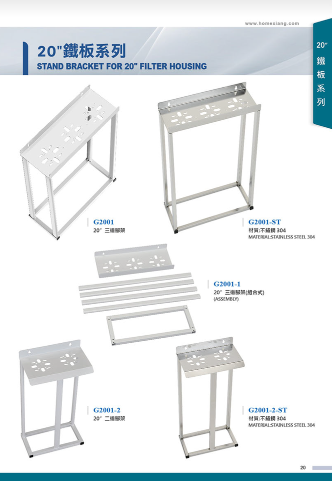 20" Slim Housing 3 Stage Stand Type RO Water Filter System Manual Iron Without Pump Mounting Bracket Parts Made in Taiwan