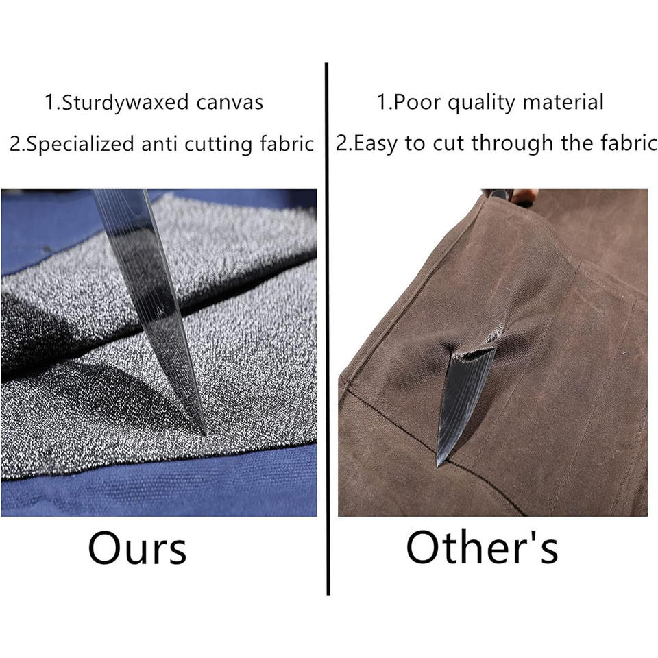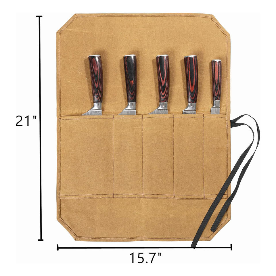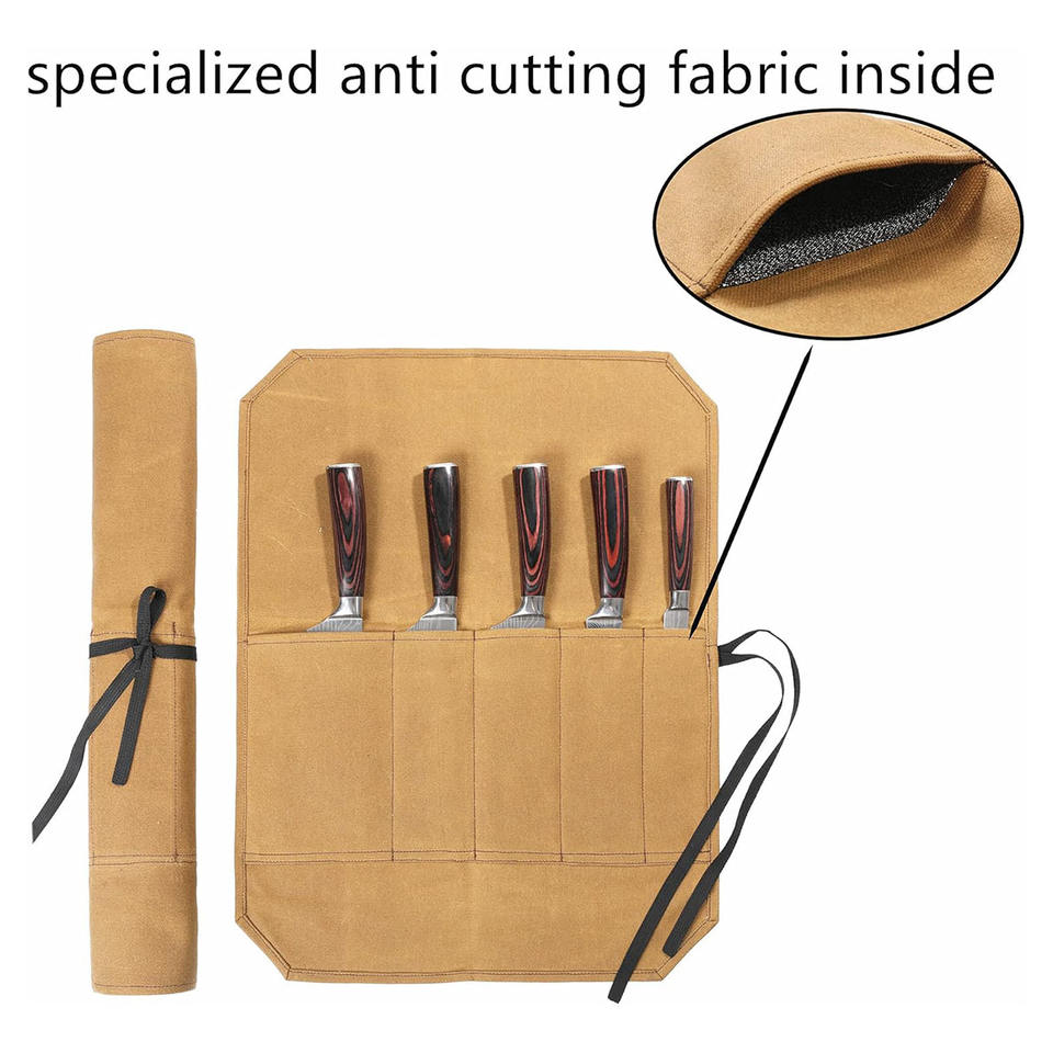 Made OEM/ODM High Quality Waxed Canvas Lightweight Knife Roll Organizer 5 Pockets Cut Resistant Liner for Chefs BBQ Camping