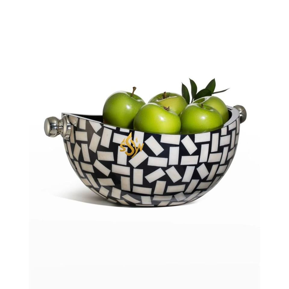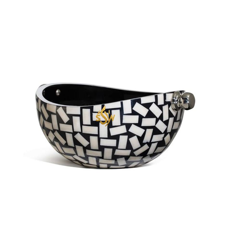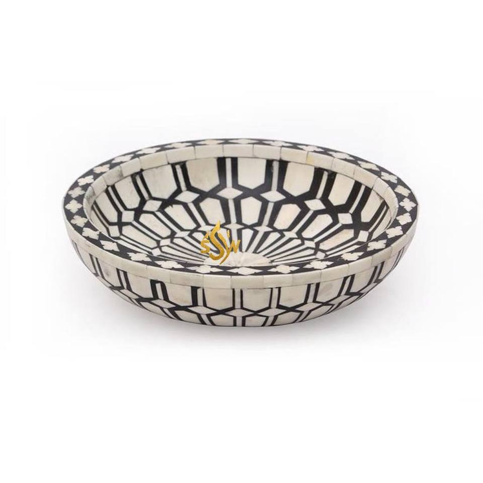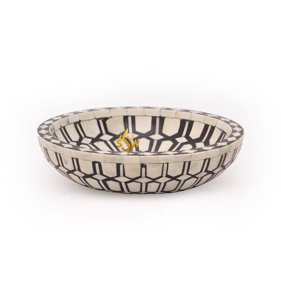 Made Of Bone Inlay Round Shape Wooden Food Mixing Bowl Handmade Large Size Japanese Style Chocolate Serving Bowl For Hot Sale