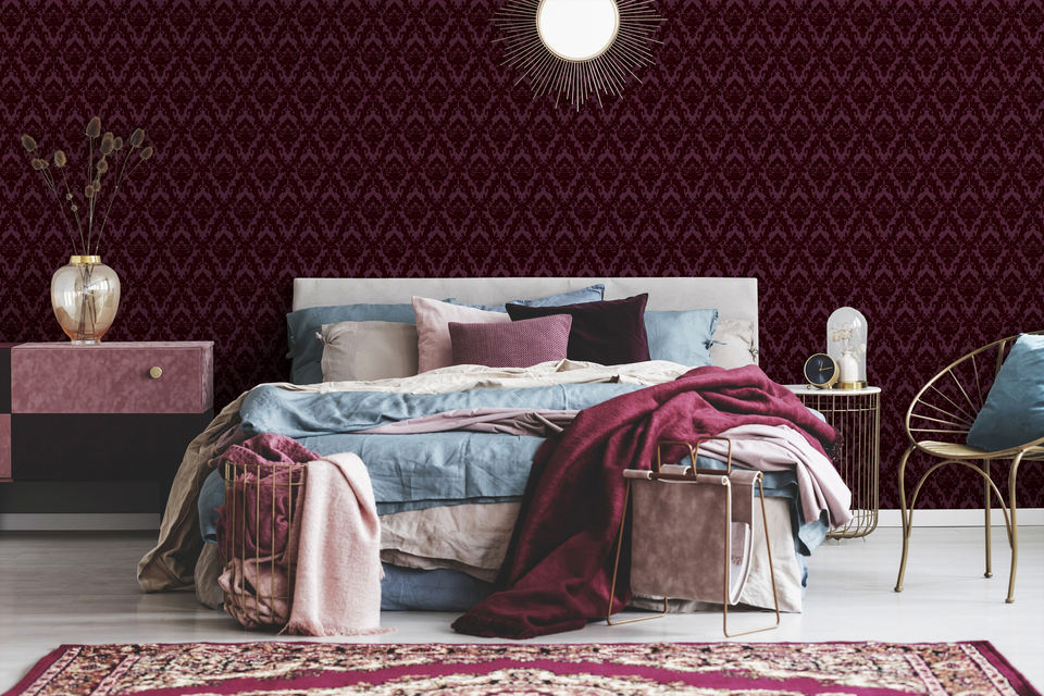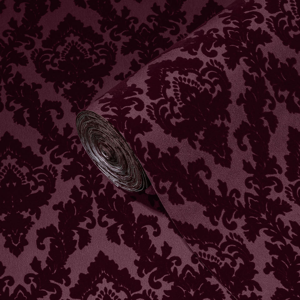 Made in Germany Luxury Wallpaper Rolls with Velvet Flock Damask Red Non Woven Premium Fabric Wallpaper Decor - 10,05 x 0,52 m