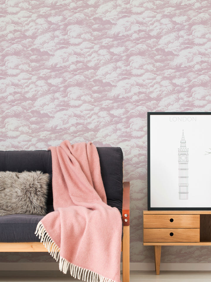 Made in Germany - Luxury Wallpaper rolls Clouds Pink White Non Woven Contract Wallpaper for Hotel - 10,05 x 0,53 m