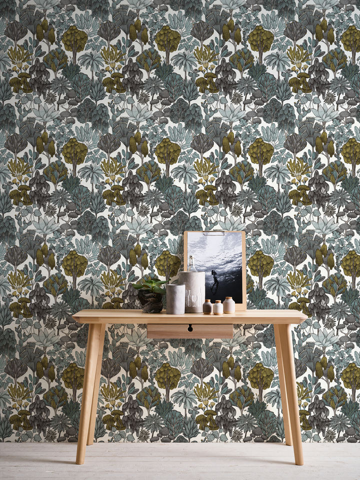Made in Germany - Luxury Wallpaper rolls Jungle Green Grey Yellow White Non Woven Contract Wallpaper Flowers - 10,05 x 0,53 m