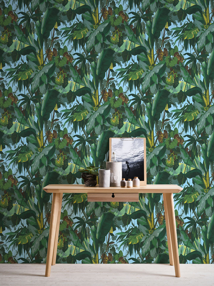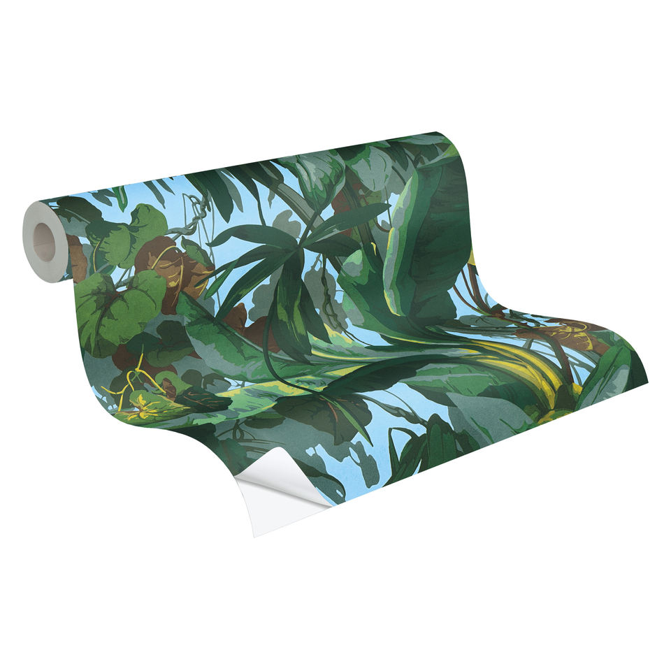 Made in Germany - Peel and stick Wallpaper Jungle Green Blue - Film Non Woven - Self Adhesive Leaves Wallpaper - 8,40 x 0,53 m