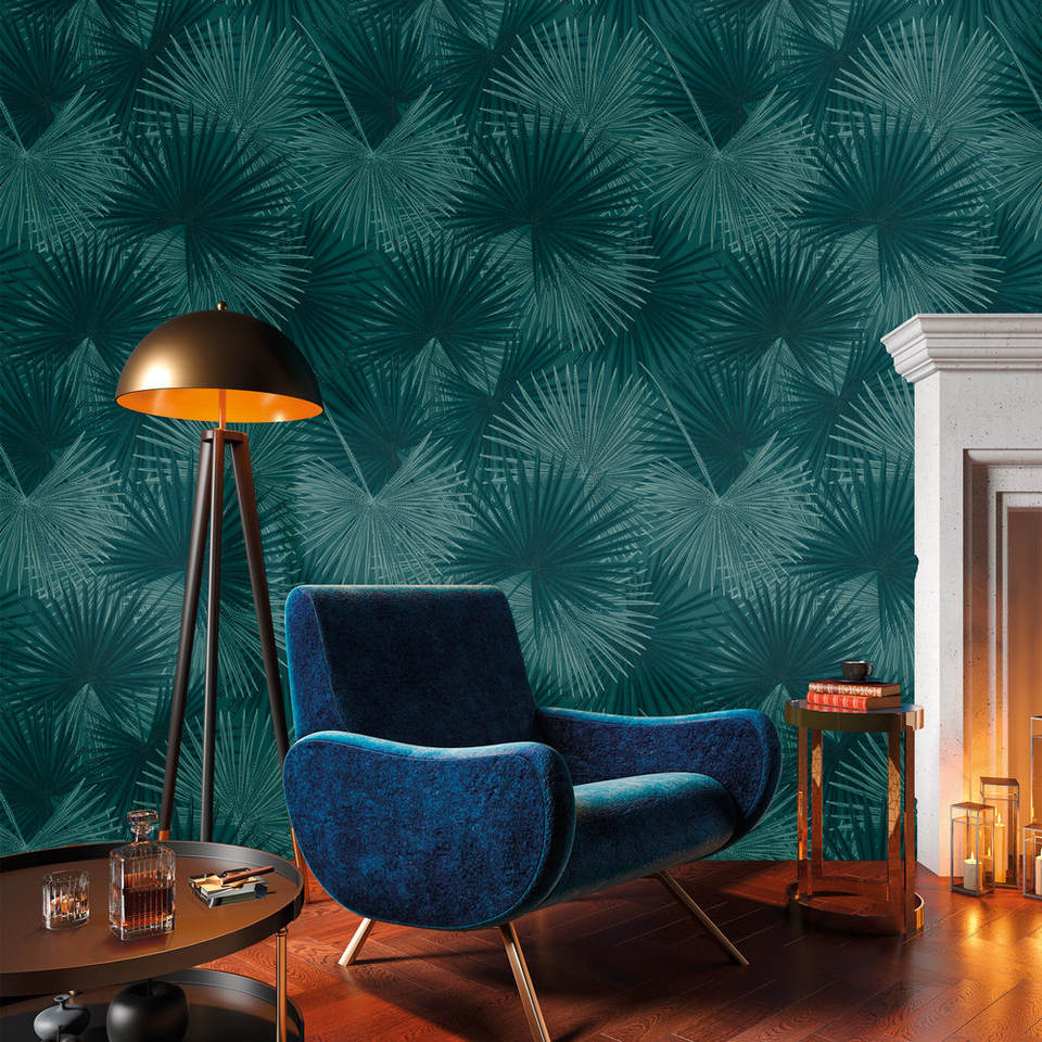 Made in Germany Photo Wallpaper Murals Jungle Petrol Non Woven Vinyl Wall Mural Leaves Large Format for Hotel - 1,59 x 2,80 m