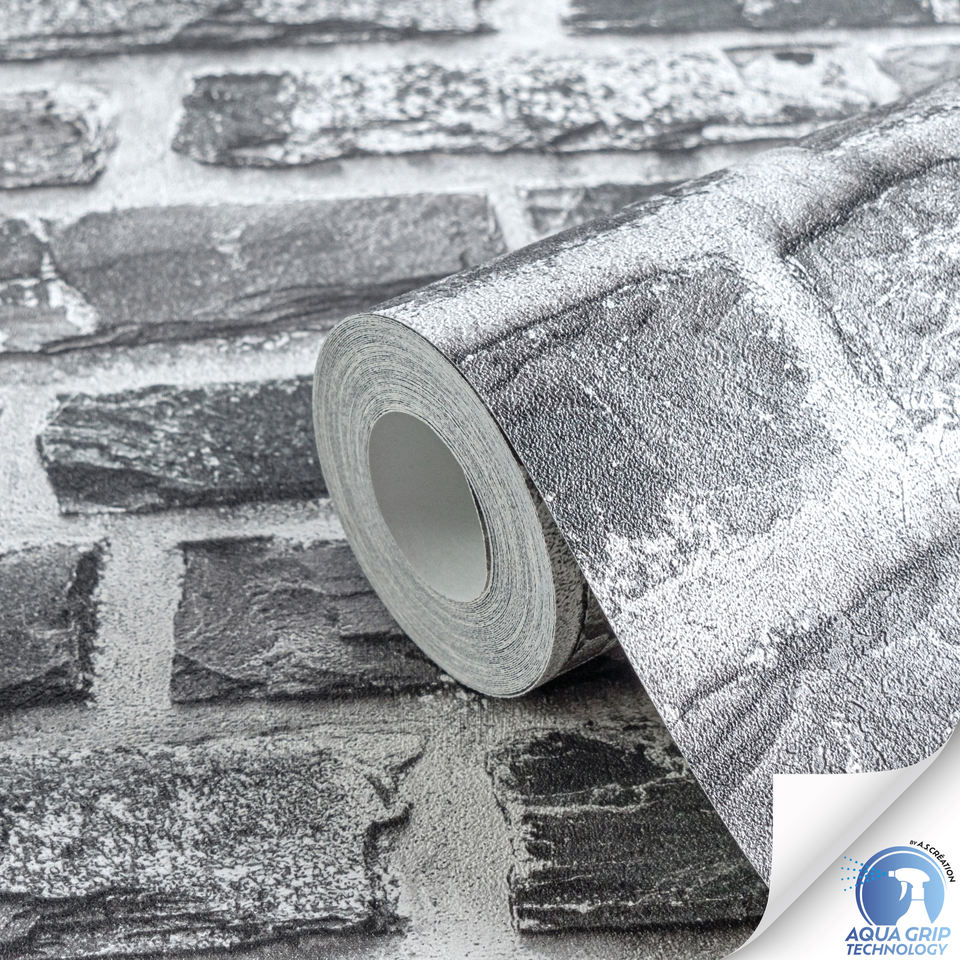 Made in Germany - Pre-Pasted Wallpaper Rolls Stone Grey Black - Non Woven Vinyl - Brick Wallpaper Pre-glued - 10,05 x 0,53 m
