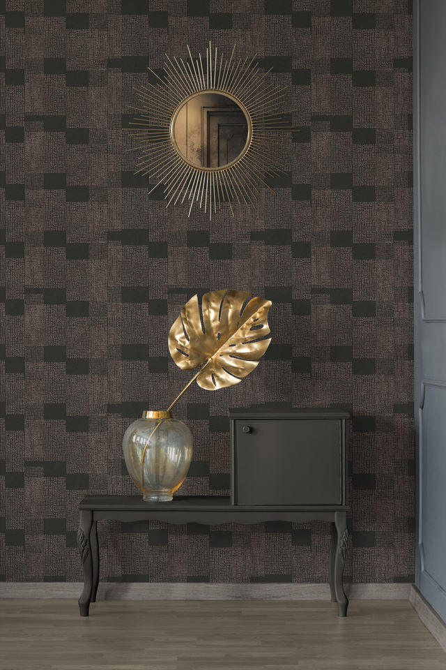 Made in Germany - Sale Wallpaper Rolls Geometric Bronze Black Stocklot Non Woven Vinyl Wallpaper Modern - 10,05 x 0,53 m