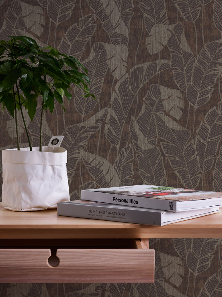 Made in Germany - Wallpaper rolls Leaves Brown Grey Black - Non Woven Vinyl - Wallpaper Jungle Plants for Walls - 10,05 x 0,53 m