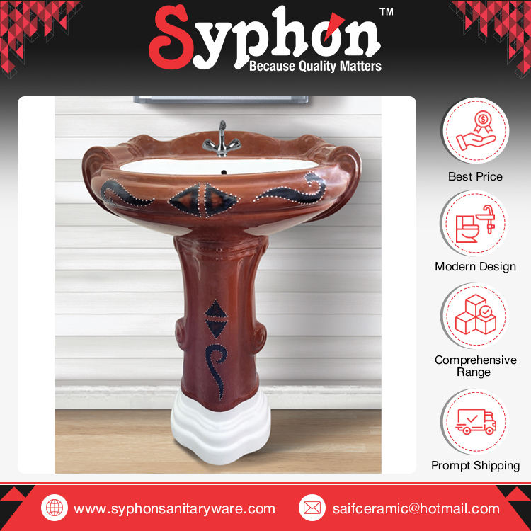Made in India Superior Quality Floor Stand Sanitary Ware Product Ceramic Designer Pedestal Hand Wash Basin Sink at Low Price