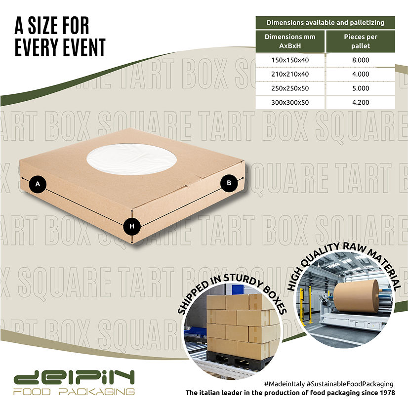 Made in Italy Ecological Luxury Disposable Square Cardboard Customizable Tart Box with Window