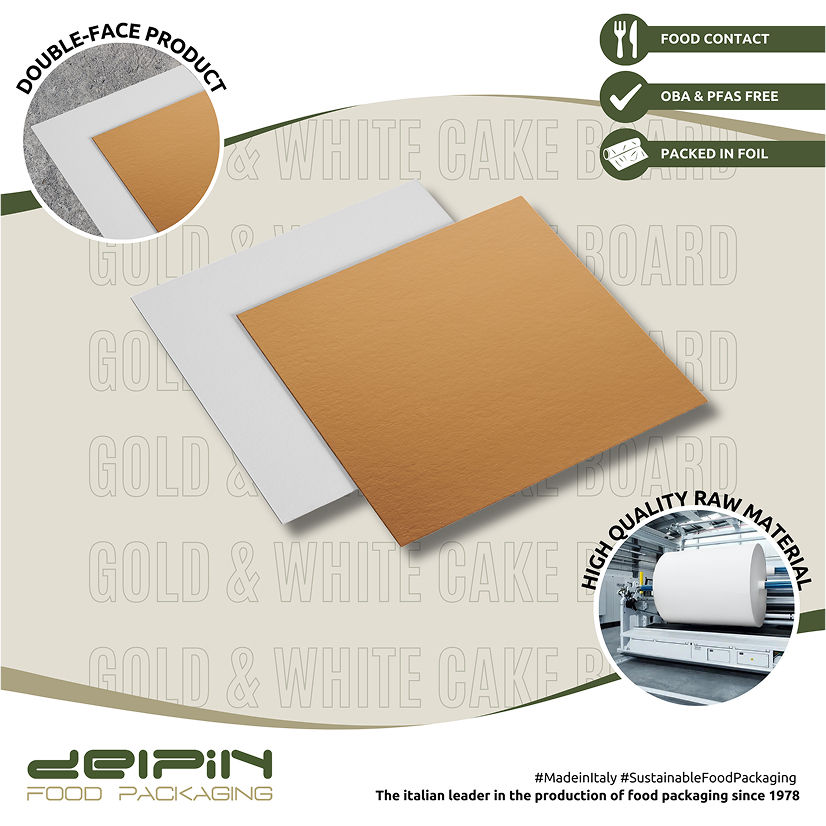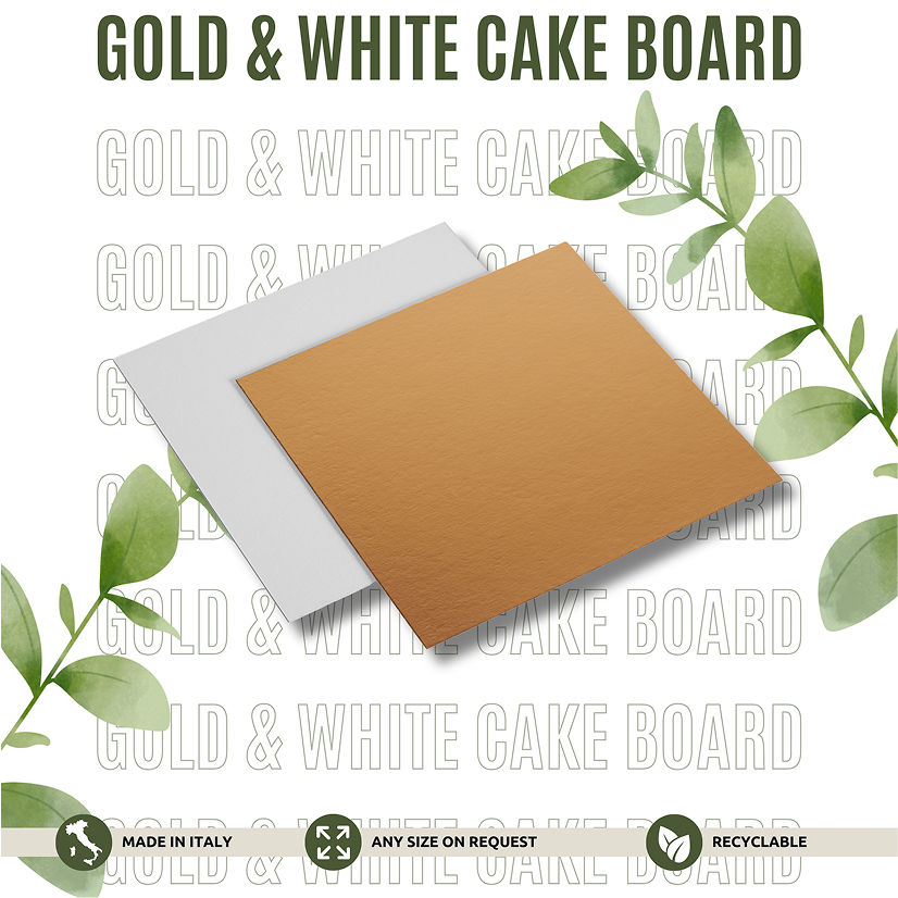 Made in Italy Laminated Disposable Rectangular Square Gold & White Cake Board Cardboard Different Size Ready To Ship