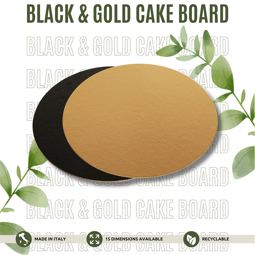 Made in Italy Laminated Disposable Round Black & Gold Cake Board Cardboard Different Size Ready To Ship