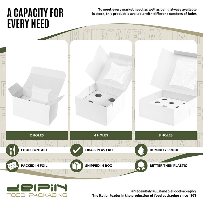 Made in Italy Luxury Disposable Rectangular Cardboard Customizable Cupcakes Box Muffin Box Pastry Box with Window Different Size