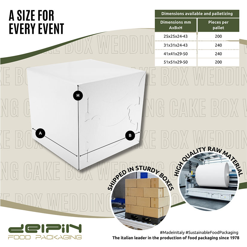 Made in Italy Luxury Disposable Square Cardboard Wedding Box Cake Design Box Different Size Ready to Ship