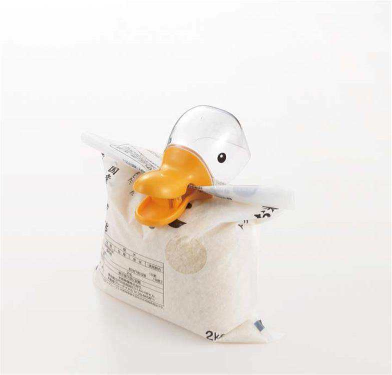 Made in Japan Metal Duck-Shaped 2-Piece Food Bag Clips with Measuring Spoon Moisture-Proof Sealing