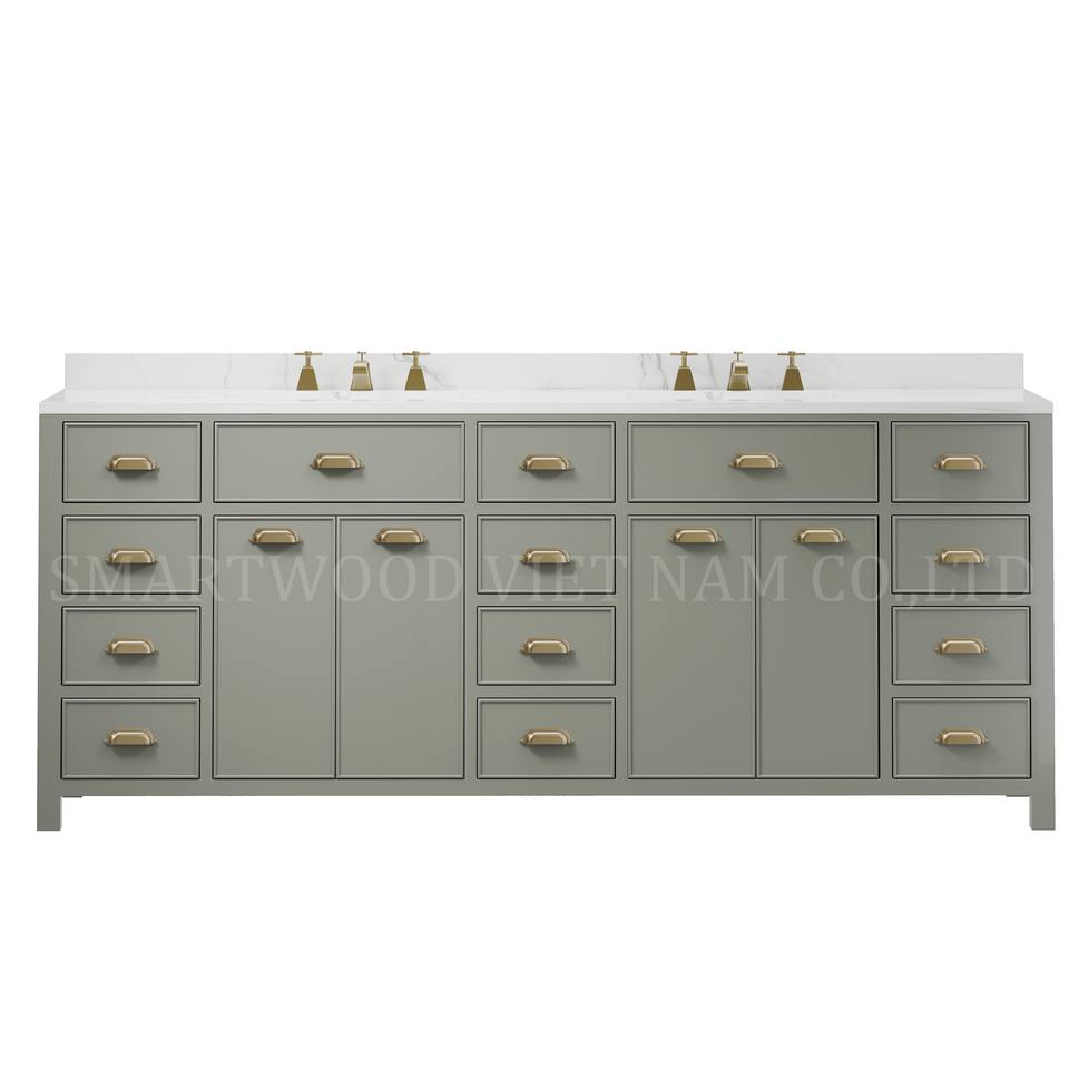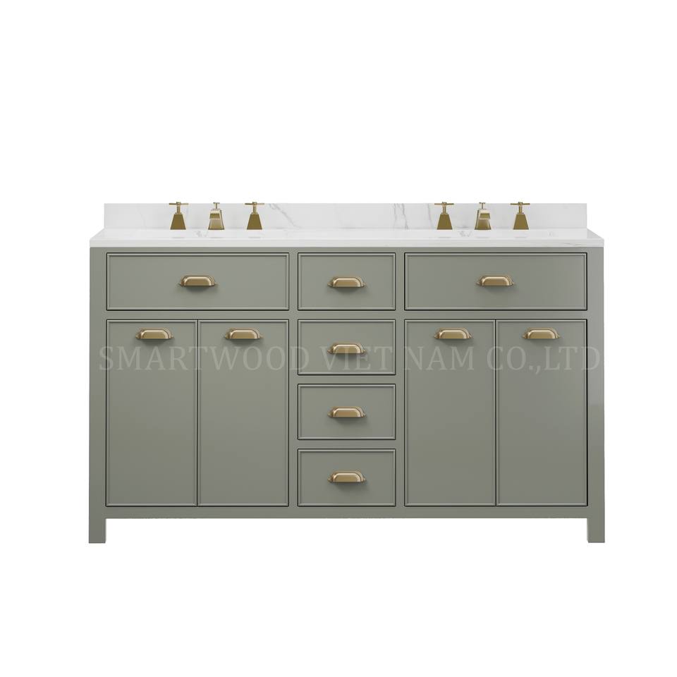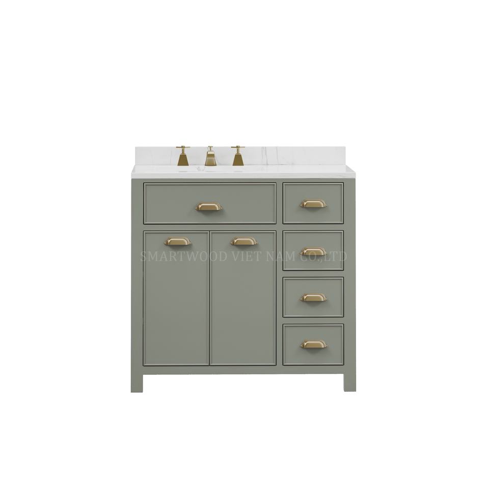 Made in Vietnam Bathroom Cabinet Porcelain Basin Floor Standing LED Mirror Lacquered Sage Green Finish Water Resistant