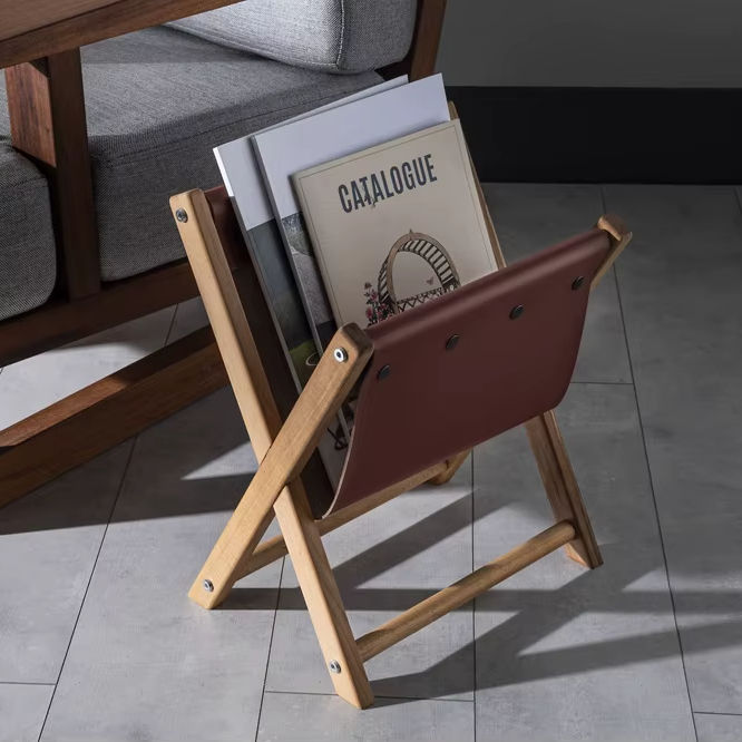 Magazine and Newspaper Holder Wooden and Leather File Organizer for Floor Living Room/Home Office Decoration Newspaper Rack