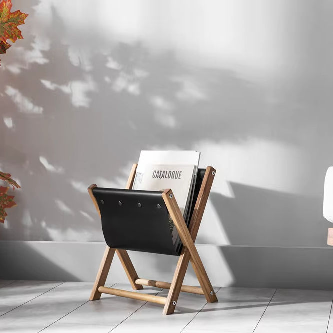 Magazine and Newspaper Holder Wooden and Leather File Organizer for Floor Living Room/Home Office Decoration Stylish Holder