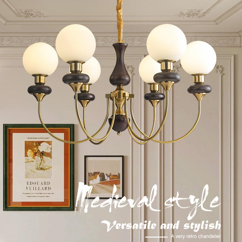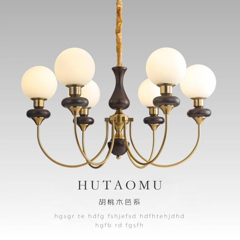 Magic Bean American Retro Style Ceiling Light French Vintage Living Room Dining Room Fixture in Walnut Wood Color for Bedroom