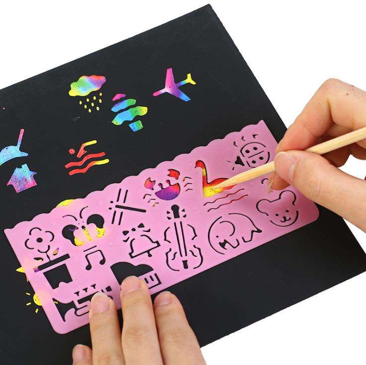 Magic Colorful Scraping Art Paper With Stencil Wood Pen for Graffiti Art Painting