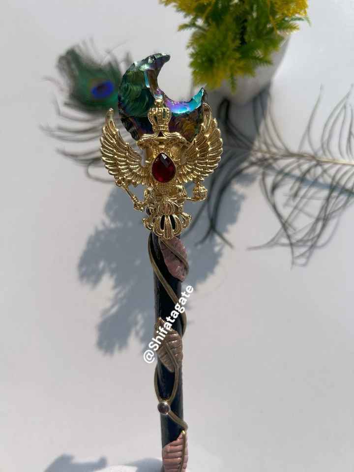 Magic Wand Witch Wizard Wand Gold Handcrafted Wooden Eagle Crystal for Cosplay Handmade AGATE Painted Black + Gold Pillar Egal
