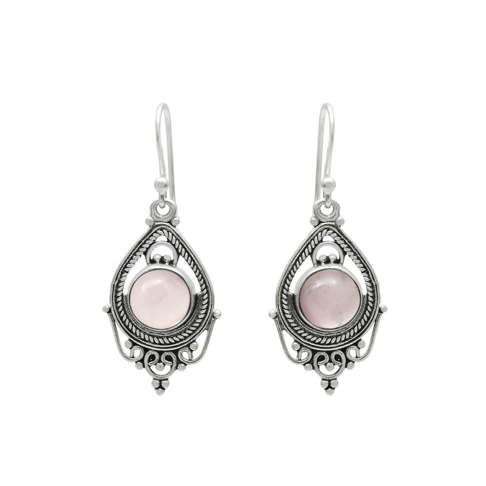 Magical Pink Color Wholesale High Quality Natural Rose Quartz Gemstone 925 Sterling Silver Earrings Women Fashion Fine Jewelry